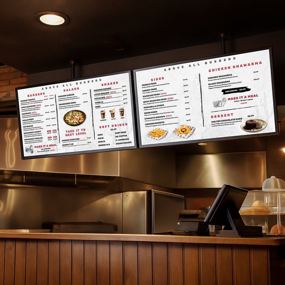Modern digital menus designed to highlight your food, boost sales, and keep your brand looking sharp on every screen.