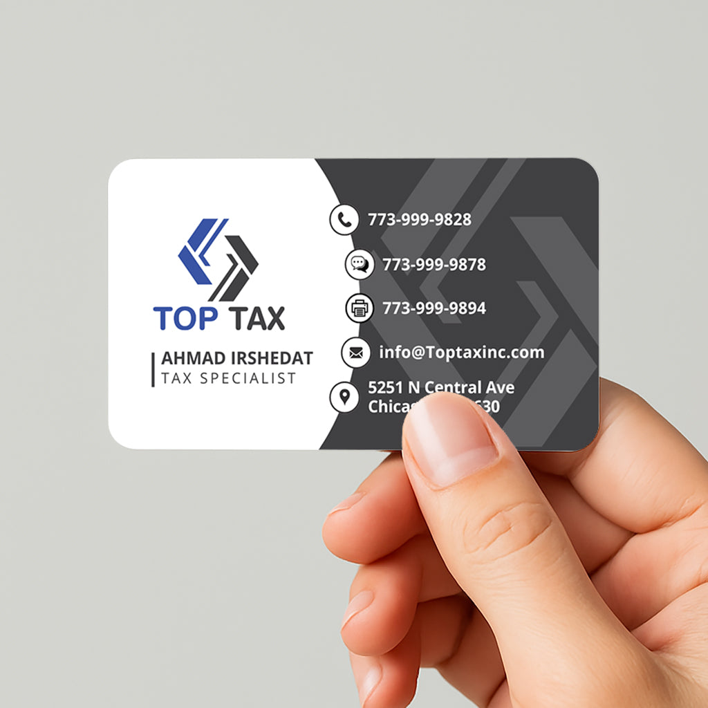 Premium, professionally designed business cards printed with sharp detail to elevate your brand in every interaction.